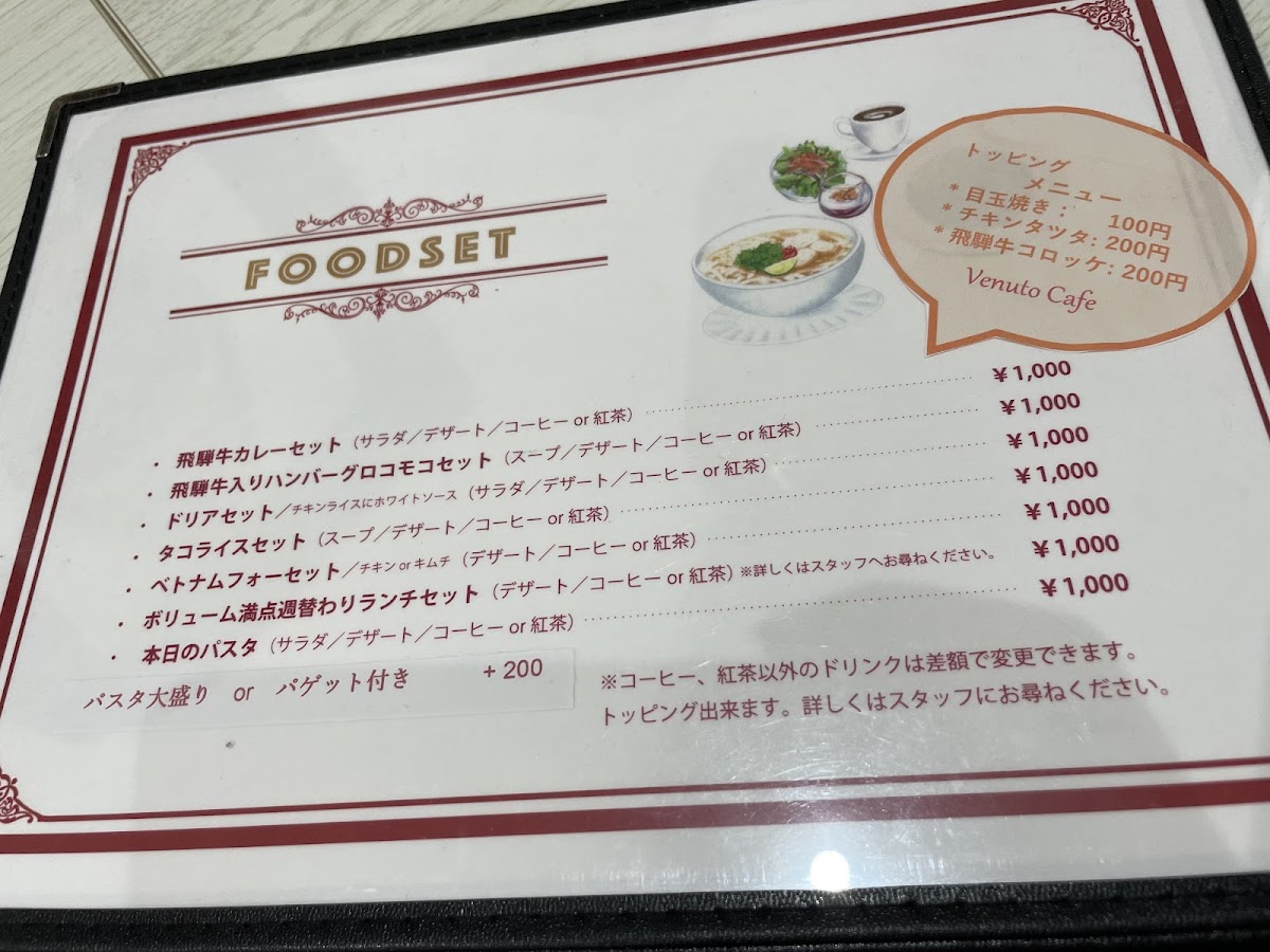 Venuto cafe ヴェヌートカフェ Menu